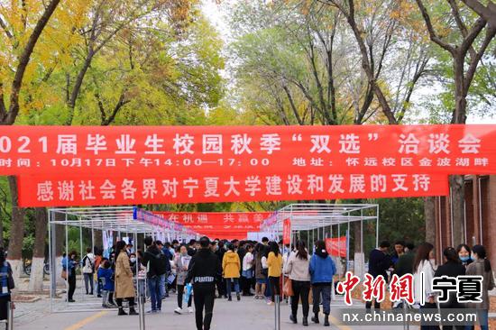 10月17日,宁夏大学2021届毕业生校园秋季“双选”洽谈会在怀远校区举办。
