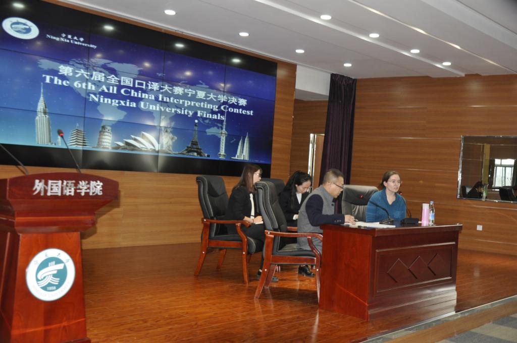 【宁夏大学新闻中心讯 外国语学院 王秋滟/文】3月22日下午,第六届全国口译大赛宁夏大学决赛在外国语学院举行。2015级英语口译专业的学生刘正、李亚琪、樊友文、张涵脱颖而出,将代表我校参加第六届全国口译大赛西北赛区大区赛。