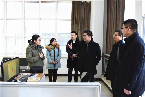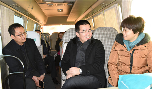 【宁夏大学新闻中心讯 龚旭峰 曹强 文/图】12月27日,校党委书记金能明、副书记王宏伟乘坐中卫校区通勤班车到中卫校区调研。党办、教务处、经济管理学院等单位负责人陪同调研。