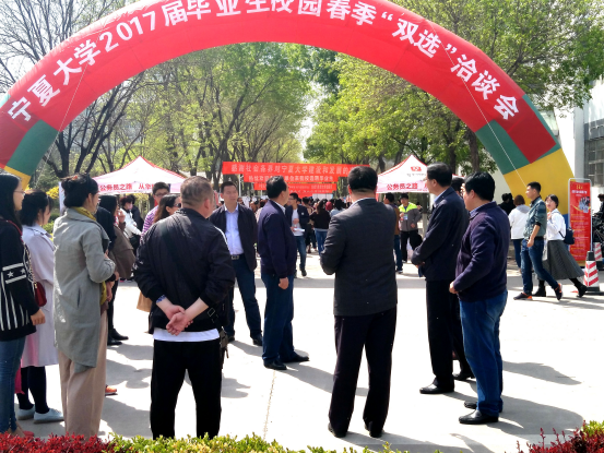【宁夏大学新闻中心讯 创新创业学院 张景/文 张景/图】4月26日,怀远校区金波湖畔格外热闹,320多家来自北京、内蒙古、陕西、宁夏、深圳等省(区)市的用人单位“集结”我校2017届毕业生春季校园“双选”洽谈会,向我校毕业生伸出“橄榄枝”。
