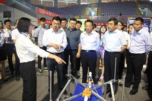 27日下午,参赛作品在文萃校区大学生活动中心进行集中展示。自治区团委书记赵涛、自治区团委副书记丁聃、自治区科技厅副厅长郭建川、宁夏大学副校长马宗保等领导来到现场,详细了解参赛作品情况和大赛组织情况,仔细听取了现场参赛项目的介绍,与参赛团队进行了深入交流。