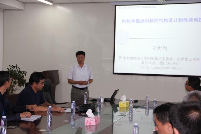 孙世刚院士一行参观了省部共建煤炭高效利用与绿色化工国家重点实验室,并为化工学院师生作了题为“电化学能源材料的结构设计和性能调控”的学术报告。