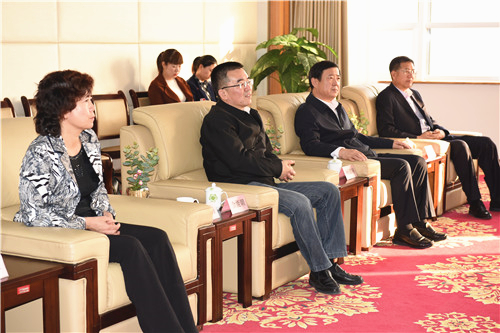 座谈会前,自治区教育厅副厅长王春秀、校党委书记金能明、校长何建国、校党委副书记王宏伟会见了陶剑一行。